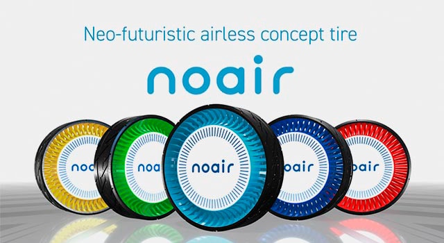 Technology for airless tires that do not require inflation, using an X-shaped spoke configuration made from a special resin, and fuel-efficient tread rubber developed through Nano Balance Technology.