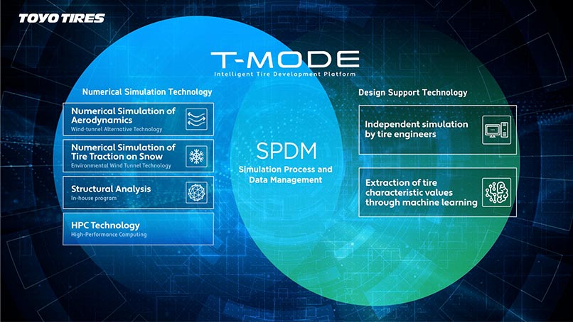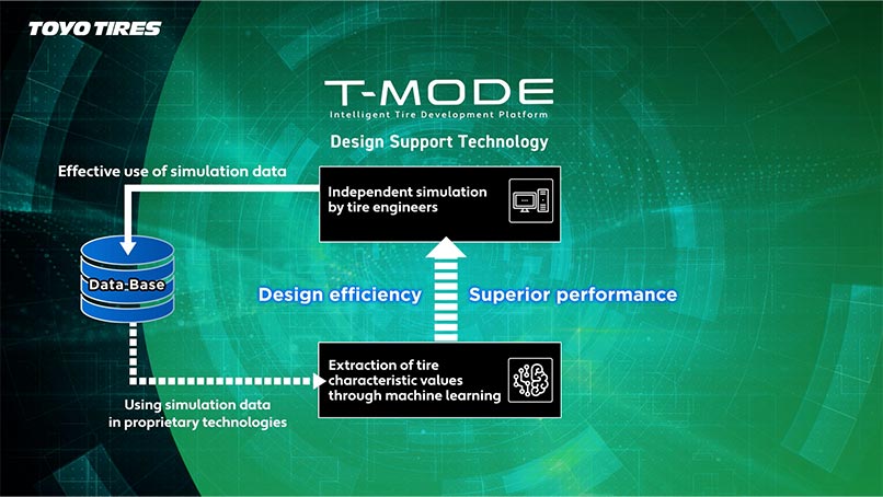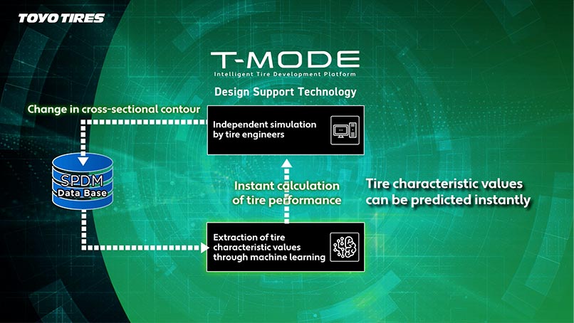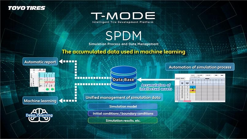By improving simulation technologies used in the conventional T-mode, and due to the construction and introduction of SPDM, machine learning has become possible. As a result, T-MODE makes it possible to develop higher performance tires more efficiently.