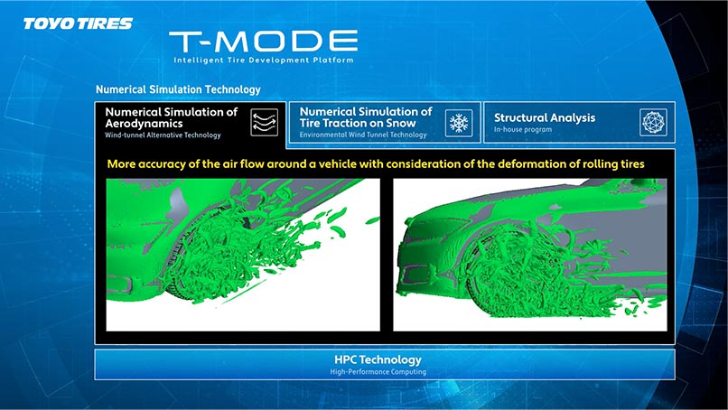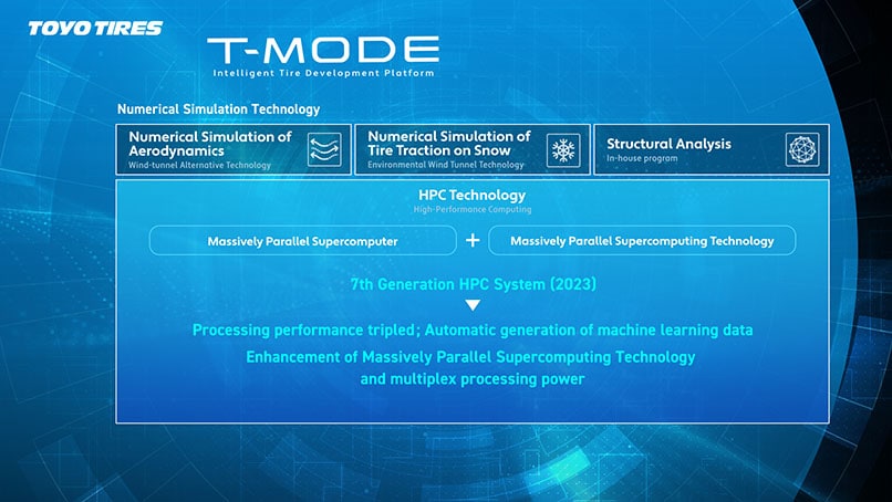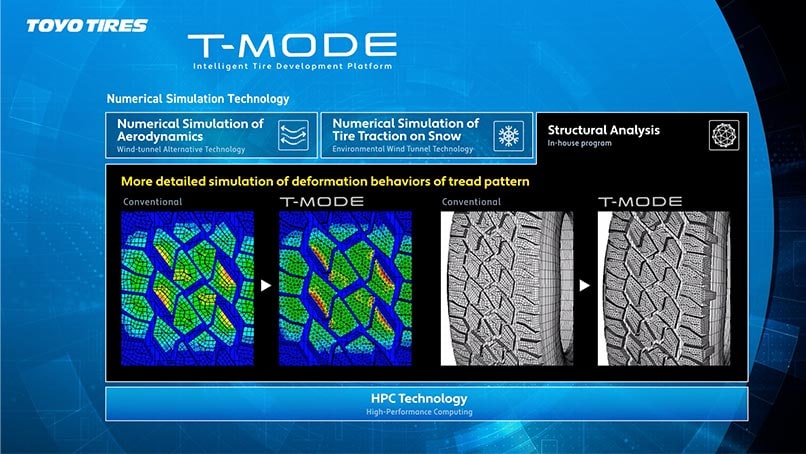 T-MODE has evolved into a tire design support technology capable of delivering optimal solutions to increasingly complex performance requirements. It is central to TOYO TIRES continued enhancement of its simulation technologies to meet the advanced performance demands of next-generation mobility.